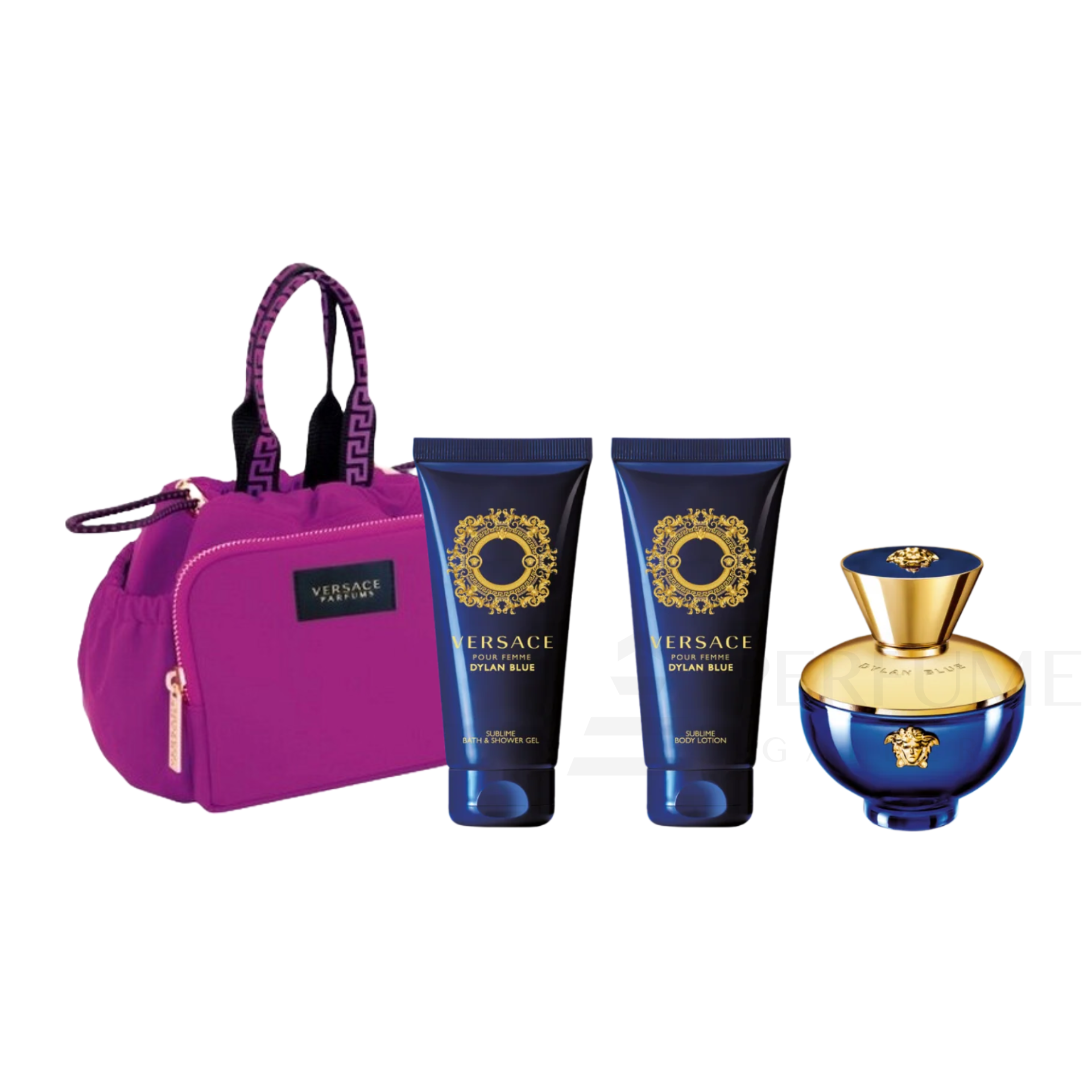 The Set Contains: This exquisite gift set includes a 100ml Eau de Parfum, a 100ml Shower Gel, a 100ml Body Lotion, and a stylish bag, making it the perfect gift for any occasion. Whether you're treating yourself or a loved one, the Versace Dylan Blue Ladies Gift Set is sure to impress.